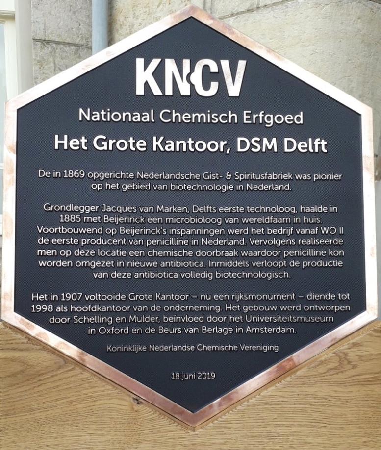 Na de Ovale Zaal in Teylers Museum in Haarlem, werd op dinsdag 18 juni 2019 het Grote Kantoor van DSM in Delft bekroond tot Nationaal Chemisch Erfgoed. Het Grote Kantoor is een prachtig gebouw om te zien, maar kent ook een belangrijke rol in de geschiedenis van biotechnologie.