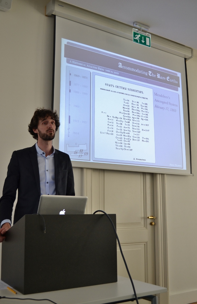 Pieter Thyssen (Postdoctoraal onderzoeker, U Leuven) over 'De Zeldzame Aard Crisis: De Accommodatie der Zeldzame Aarden in het Periodiek Systeem van 1869 tot nu'.