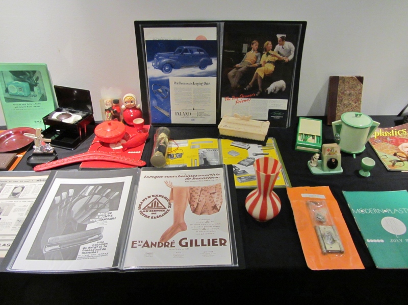 Foto van deel van de tentoonstelling over kunststoffen ingericht door verzamelaar Hans Vlottes.