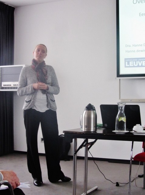 De tweede spreekster voor de koffiepauze was historica Hanne de Winter, promovenda aan de Universiteit Leuven. Zij verdedigt op 30 november 2015 haar proefschrift 'Kennisnetwerken in de landbouw. Grondonderzoek en bemestingsadvisering in België, 1840-1991'. Haar voordracht richtte zich op fosfor met de lange titel 'Over bemesting en fosfor. Een historiografische schets van het fosforgebruik in de Belgische landbouw, 1840-2011'. Vijf perioden worden daarbij onderscheiden. Begint de bemesting in de periode 1840-1884 nog vanaf de praktijk met onder meer gebruik van stalmest en guano, vanaf 1884 start een kennisoffensief van het ministerie van Landbouw. De landbouwleraar P. Wauters onderzoekt wat de bodem nodig heeft voor een optimale gewassengroei en stelt een bemestingsleer op. En constateert een fosforgebrek. Het fosforverbruik aan superfosfaat en metaalslakken in België groeit in de periode 1895 tot 1910 met een factor drie. In het interbellum komt de bodemanalyse op met als motor het Bodemkundig Laboratorium te Leuven onder leiding van Jozef Baeyens. Nederland kende een soortgelijke organisatie in het Bodemkundig Instituut te Groningen van David Hissink. Per perceel wordt een bemestingsadvies gegeven. Het fosforverbruik neemt toe van 255.370 ton in 1910 tot 447.228 ton in 1929. Na de Tweede Wereldoorlog tot de federalisering van België in 1982 worden de adviezen gegeven door de Bodemkundige Dienst van België die los staat van de universiteit. In 1948 wordt weer een gebrek aan fosfor geconstateerd en neemt het fosforverbruik toe met als gevolg een fosforovermaat in de bodem. In Vlaanderen daalt het fosforgehalte langzaam vanaf 2008, maar in 2011 heeft 77% van de Vlaamse landbouwgrond nog steeds een overschot aan fosfor. De vraag werd gesteld in welke vorm fosfor zich nu bevindt. Als de fosforverbinding niet oplost zal die in de bodem blijven maar niet worden opgenomen door het gewas.
