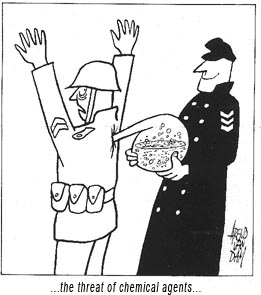 'De geest in de fles' is dan ook de titel van een recente studie van het Nederlands Instituut voor Militaire Historie (NIMH) over de omgang van de Nederlandse defensieorganisatie met chemische strijdmiddelen in de periode 1915-1997. Maar een fles is meestal van glas en kan breken. Voorzichtigheid blijft derhalve geboden, want terroristen houden zich niet aan internationale verdragen. Er wordt dus nog altijd 'tegengas' gegeven bij TNO zoals onderzoek naar het aantonen van de blootstelling van de mens aan strijdgassen.