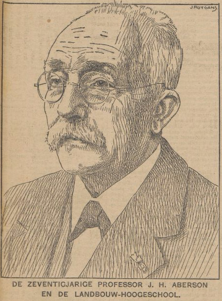 - In het bijvoegsel van het Algemeen Handelsblad van 29 oktober 1927 verscheen een uitgebreid artikel met als titel ‘De zeventigjarige professor J.H. Aberson en de Landbouw-Hoogeschool’. Te lezen via het digitale historische krantenarchief van de Koninklijke Bibliotheek in Den Haag (www.kb.nl). In de landelijke pers werd tevens ruime aandacht besteed aan zijn emiraat in 1928 en overlijden in 1935.