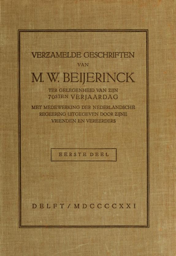 Het boek is opgenomen in de Digitale Bibliotheek van de Nederlandse Letteren. - Verzamelde geschriften van M. W. Beijerinck ter gelegenheid van zijn 70sten verjaardag, met medewerking der Nederlandsche regeering uitgegeven door zijne vrienden en vereerders, Delft, 1921, 426 pp. Het boek is digitaal beschikbaar gemaakt door The Biodiversity Heritage Library.