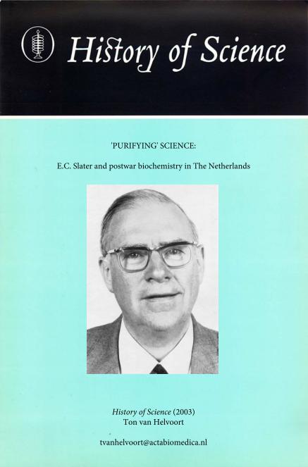 - Ton van Helvoort, 'Purifying' Science: E.C. Slater and Postwar Biochemistry in the Netherlands, History of science; an annual review of literature, research and teaching, April 2003, 1-34. Klik hier om als pdf te downloaden van www.researchgate.net.